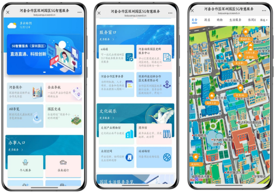 此外,福保街道基于高密度5G基站,构建了5G消息服务体系,为首次进入河套园区的人员精准推送智慧服务信息,集成政务办理、休闲娱乐、餐饮美食、园区住宿、AR导览等多种功能。从“人找渠道”到“渠道找人”,实现了“事项一目了然、服务一触即达”,让来访者迅速了解、智享并融入河套园区。