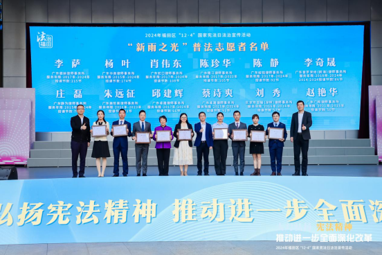 12月1日,福田区人大常委会、福田区委全面依法治区办、中国法治出版社、福田街道党工委在福田街道水围文化广场共同举办“大力弘扬宪法精神,推动进一步全面深化改革”2024年福田区“12·4”国家宪法日法治宣传活动,正式拉开今年“宪法宣传周”活动帷幕。
