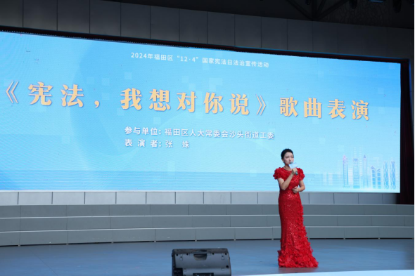 文艺弘扬法治,法治滋养文艺。本次活动邀请了区人大常委会沙头街道工委工作人员、福田区社区“法律明白人”代表、人民调解员代表分别带来宪法主题节目表演,以法治文艺作品引导人们崇德尚法、践行法治。