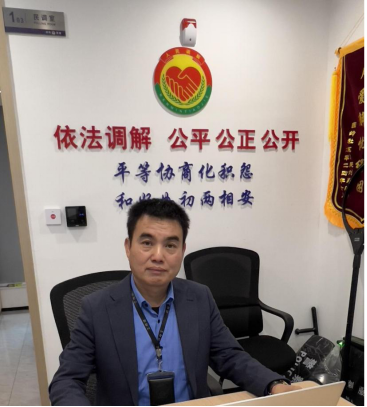 人物:沈新强,福田区园岭街道人民调解委员会驻通新岭派出所调解员。