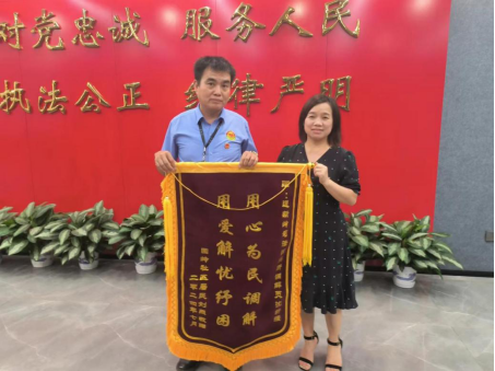 事后,刘女士专程来到派出所调解室为沈新强送上锦旗:“感谢沈调解员,是你让我感受到了这座城市的温暖!”