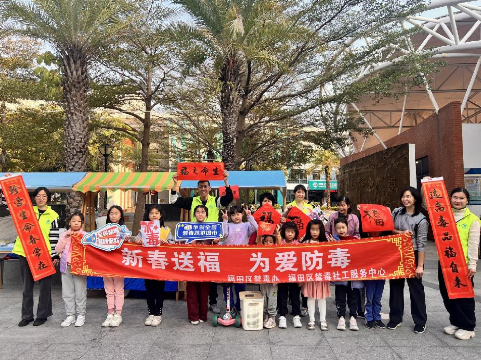 在新春佳节即将来临之际,为增强社区居民对毒品危害的认识,提高全民禁毒意识,2025年1月20日下午,福田区禁毒办联合福田区福保街道办事处,在益田社区中心文化广场举办了一场别开生面的“新春送福,为爱防毒”禁毒宣传活动。