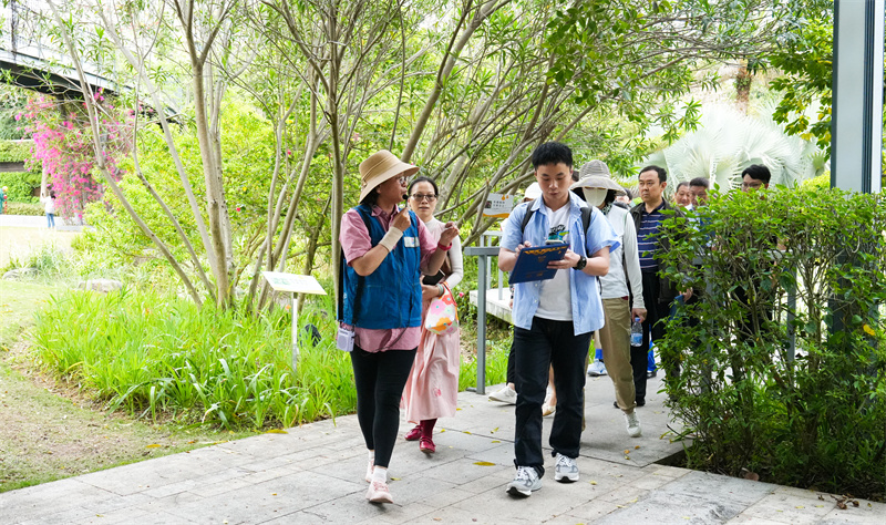 聘任仪式结束后,体验官们移步香蜜公园,开启了一场“生态+人文”的深度游园之旅。在专业导赏员的引领下,嘉宾沿公园核心景观路线漫步,途经石溪、涵洞桥、玫瑰园、椰林大道等标志性景点,感受福田人文、生态之美。