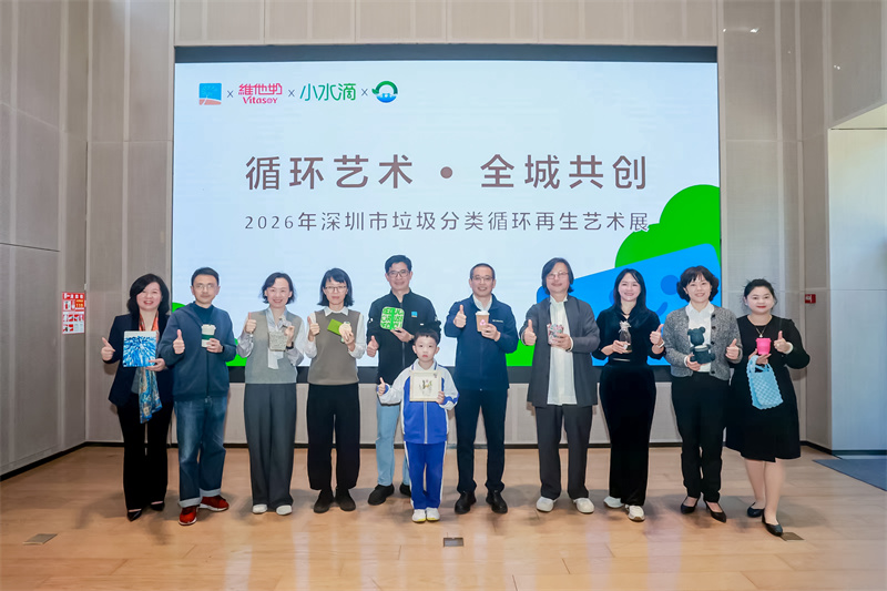 在纸包盒再生故事展开幕仪式上,市分类中心与福田区城管和综合执法局,携手艺术界、学校师生、公益机构、企业、市民等多方代表,共同发出倡议,号召有更多像维他奶这样的社会力量加入2026年深圳市垃圾分类循环再生艺术展的支持行列,鼓励学校、企业、社会团体、艺术家和市民群众积极参与循环再生艺术创作,让绿色低碳成为城市最鲜明的底色。