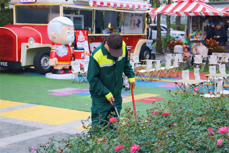 游人如织的公园里,扫帚掠过路面的声音细碎而稳定。环卫工人在热闹的缝隙中穿梭,他们用一次次的躬身,换来园径的清爽与石材的质感。这份对洁净的执着,是送给每一位游客最好的新春贺礼。