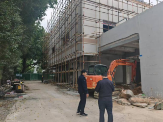 20日下午,执法队队长李珣带队前往笔架山中学北侧开展检查。根据深圳市规划和自然资源局福田管理局《关于笔架山中学建设项目总平面图修改事宜的公示》,该校项目总平面图已作调整。依据公示,空中跑道下方属学校用地,其北侧则为国有储备用地。李珣同志要求项目建设及施工单位不得违法占用国有储备用地,并尽快拆除围挡、恢复绿化。