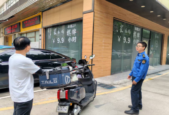 3月31日下午,三中队执法员郭世捷带队参加八卦岭宿舍区环境清洁日行动,现场联合物业管理处对宿舍区25-26栋停放电动车进行规整,全面提升小区整体环境。