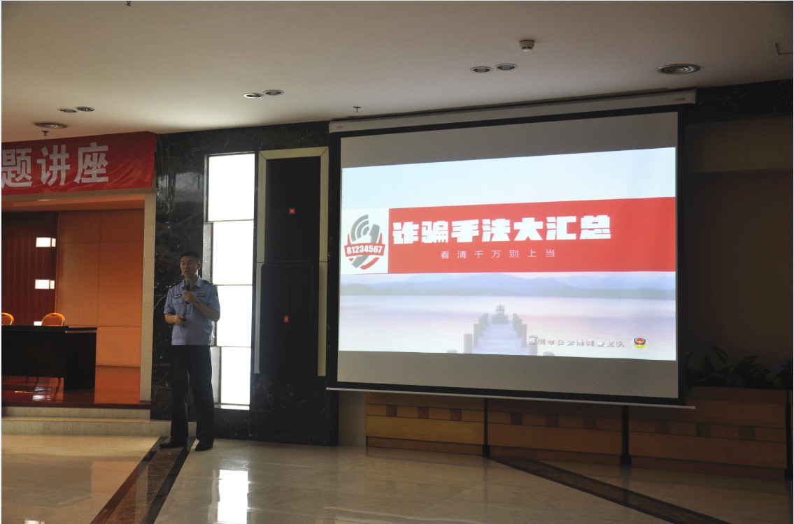 福田区经促局联合区委政法委、福田公安分局,于4月22日上午9:30-11:30,在福田区政府大院福田会堂3楼多功能厅,召开防范电信网络诈骗专题讲座,邀请深圳市公安局网络支队反电信诈骗专家讲授有关防范要领,识别技巧和应急处置技巧。区相关部门、各街道办、派出所、市场监管所、集体股份公司、区属医院、非银行金融机构等共近120家单位的负责人、财务人员出席了本次讲座。现场发放宣传材料《反信息诈骗咨询专线工作纪实》、《反信息诈骗指南》、《反信息诈骗专线——81234567》共150余套,获参会单位好评。
