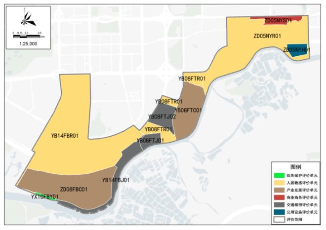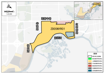 综合考虑南园街道和福保街道不含河套深港科技创新合作区深圳园区的余下区域的产业和用地性质情况,将福保街道余下区域划定为1个人居敏感评价单元,南园街道余下区域划定为1个人居敏感评价单元、1个商业商务评价单元和1个公用设施评价单元。