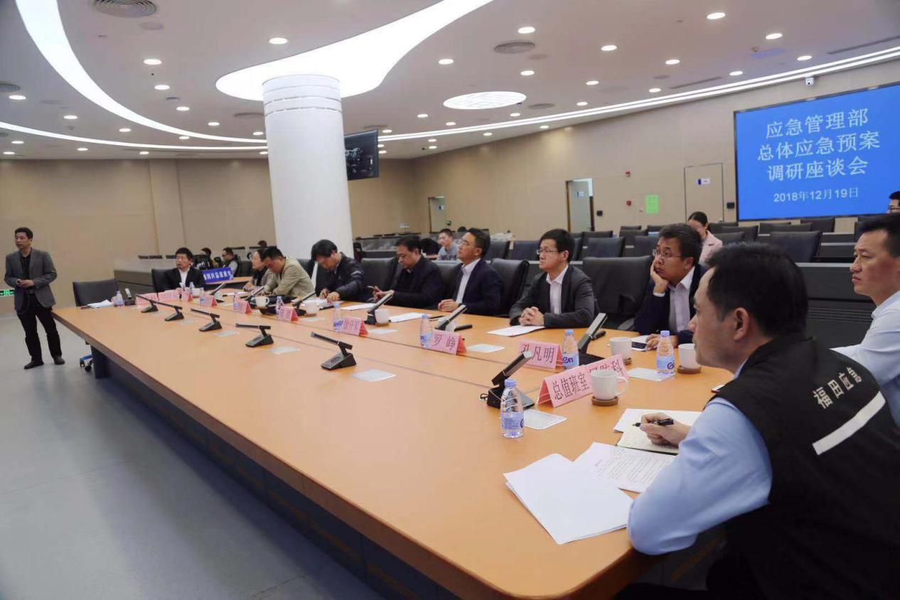 12月19日下午,应急管理部应急指挥专员陈胜一行3人到福田区调研总体应急预案修编和基层应急管理工作,广东省应急管理厅罗峥处长、深圳市应急办徐开军副主任陪同,福田区委常委黄伟、莲花街道党工委书记杨建汉、福田区应急办副主任刘汉元等参加了座谈。