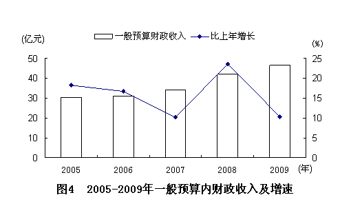 全年完成地方预算内财政收入46.70亿元,比上年增长10.4%。地方财政一般预算支出56.62亿元,增长0.6%。其中,公共安全支出7.66亿元,增长9.8%;教育支出14.01亿元,增长9.0%;一般公共服务支出4.85亿元,下降26.6%;城乡社区事务支出8.30亿元,下降4.9%;社会保障和就业支出4.15亿元,增长30.4%。