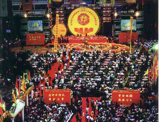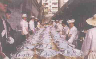 自古"民以食为天",中华民族历来十分注重饮食义化。我国是一个幅员辽阔的多民族国家,不同地域、不同民族出于地理、气候、物产、生活习惯、生产;方式各不相同,而形成了多姿多彩的饮食习俗和特色迥异的各种菜系。有的麻辣鲜香,有的清淡回甜,有的水陆齐备,有的五味俱全。但大多讲究排场,或八大碗,或十大碟。而每张桌上多达十五道菜,这十五道菜却一齐装在一只大木盆里,每张桌上就这一盆菜,这样的宴席却是深圳湾一带所特有的。
